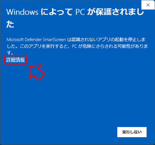 これはアプリの危険性を示すものではなく、Microsoft SmartScreen が