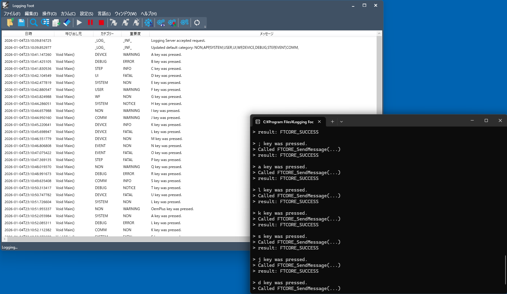2. 次にログ出力を行うサンプルアプリを起動します。